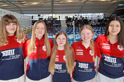 Die Schwimmerinnen des KSV Nachwuchsmodells in Graz. v.l.n.r.: Elena Moosbrugger, Hannah Binder, Paula Schwarz, Emma Schwarz, Jana Hofstadler